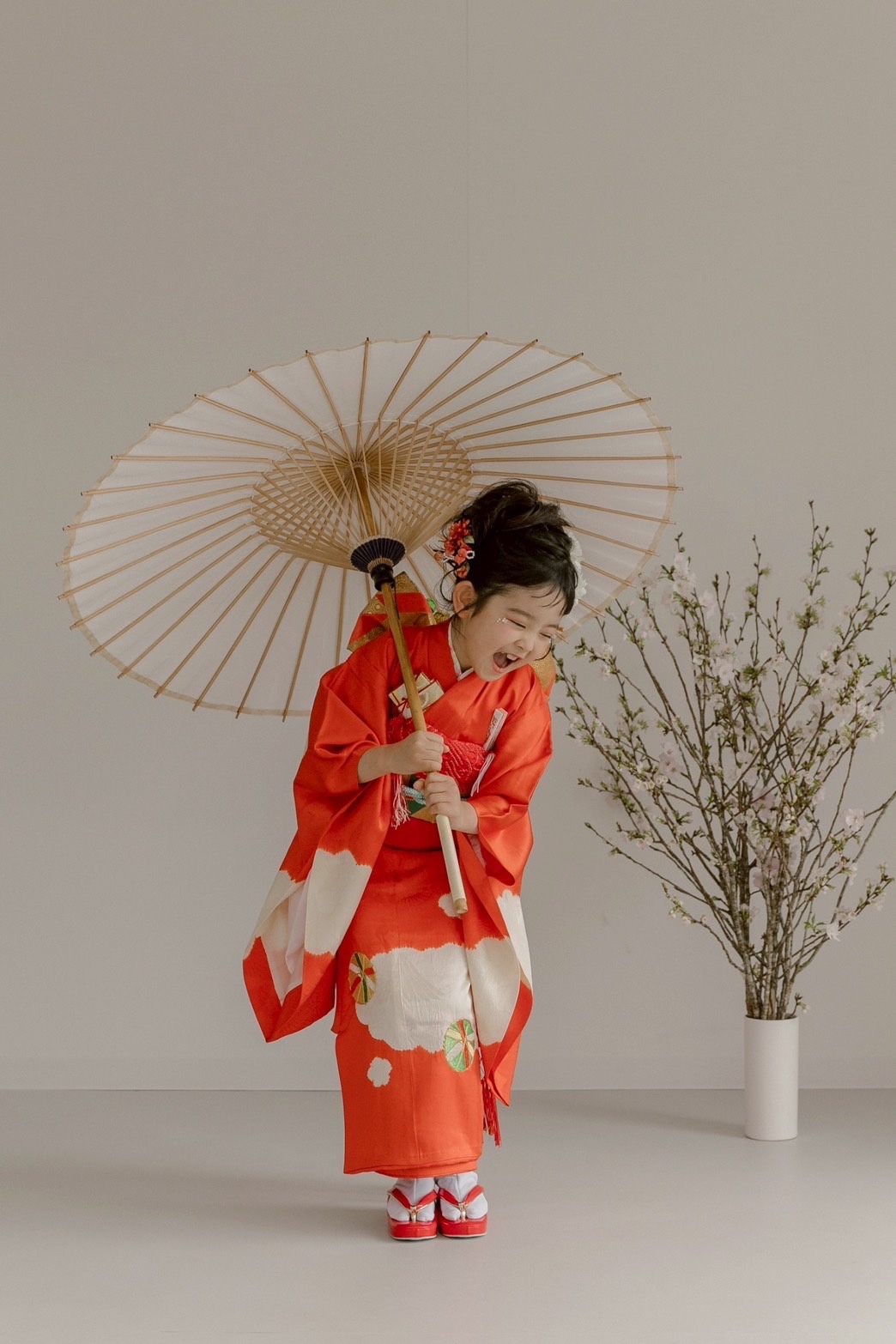 和傘と真っ赤な着物で普段とは違う、最高な瞬間を✨